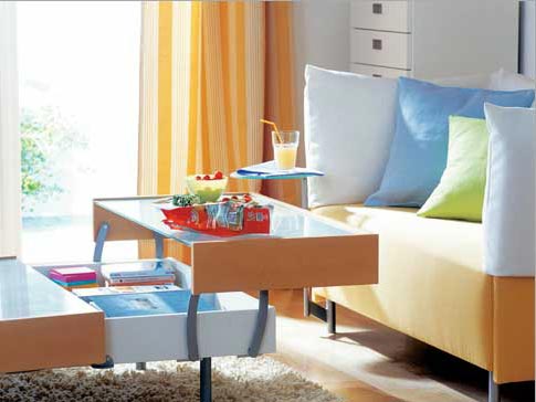 一款實(shí)用的茶幾對(duì)于打造一個(gè)整潔的客廳很有助益。桌面由可升降的兩部分構(gòu)成,并且?guī)в袃?nèi)置收納抽屜的茶幾,可以收納平時(shí)坐在沙發(fā)上經(jīng)常會(huì)用到的物品,例如書(shū)籍、紙巾等。 【推薦閱讀:實(shí)惠裝修 3萬(wàn)裝修出120平3室2廳的完美家居(圖)】