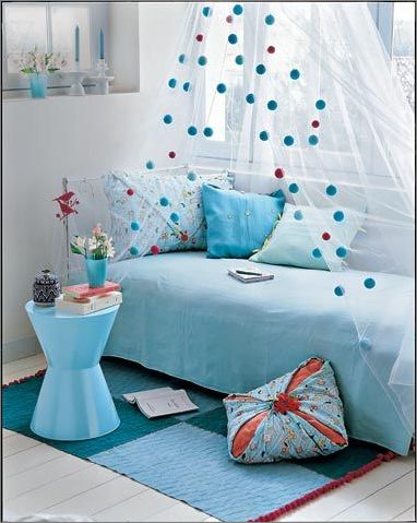 搭配建議:這種自然而明媚的色彩,與鮮艷的暖色調(diào)民族圖案布藝搭配,中和了色彩中偏冷的部分,顯現(xiàn)出更平衡與時(shí)尚的感覺。