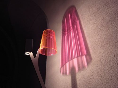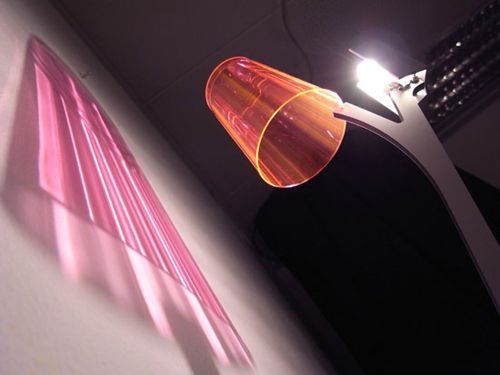 家庭裝修中,燈具的作用除了基本的照明,更重要功能是制造出不同的色彩氛圍,為居室空間營(yíng)造出不同的視覺(jué)層次。Martin Neuhaus的這個(gè)設(shè)計(jì),將立柱上射燈的光芒透過(guò)一個(gè)有褶皺的透明杯體,利用三維棱狀結(jié)構(gòu)的折射特性在墻上投射出一個(gè)比杯子大很多的有著明暗和虛實(shí)的燈罩圖案,真是相當(dāng)?shù)挠腥ぁ?
